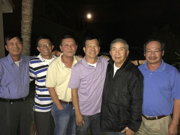 Ngô Kim Trọng (áo jacket đen) đã dần dần hồi phục sau trận stroke hồi đầu năm, đứng bên cạnh Vũ Trọng Khảo và anh em Bắc Cali.