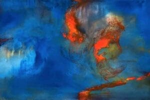 Lửa Bình Minh – Tranh: Laura Vaczek (Nguồn: www.artmajeur.com) 1. tôi sinh ra ở đây trong lớp vỏ cứng con hàu tình yêu này trôi dạt với bùn và đá phiến bóng mượt khi thủy triều thấp gợi chút mát mẻ của biển sâu một cái hốc hải quỳ xấu hổ trong cát con chó chạy