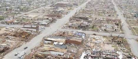 Trung tâm chính của thành phố gồm tòa thị chính, trạm bưu điện, tiệm cà phê nơi hẹn hò buổi sáng của nhiều cư dân thành phố, giờ chỉ còn là khu đất trống. 10 người chết. Vài chục người bị thương. Con bão dữ được xếp lọai EF-5, tức thứ gió xóay có sức tàn phá mạnh nhất. Với tốc độ di chuyển 205 dặm một giờ, nó để lại dấu vết hủy hoại trên một chu vi 22 dặm dài và gần 2 dặm rộng. Cả thành phố đi tị nạn nơi khác. Các viên chức thành phố cam kết sẽ xây dựng lại thành phố trên những đống đổ nát vẫn chưa được dọn dẹp.