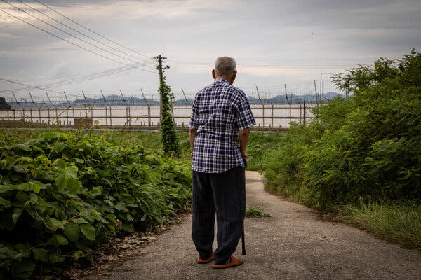 Ông Ahn bên ngoài nhà mình ở Gimpo, gần biên giới với Bắc Triều Tiên.