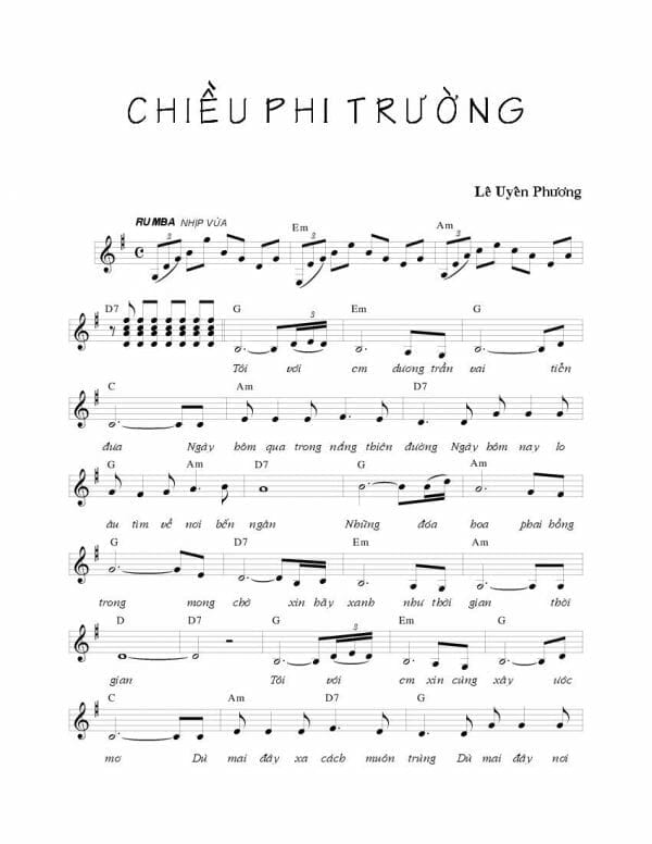 Như có viết trong một bài trước, tôi đặc biệt thích cách đặt số lượng các chữ trong các bài hát của nhạc sĩ Lê Uyên Phương. Cách đặt này làm bài nhạc luôn luôn có một cái gì đó sôi động, nhấp nhỏm, không đoán trước được, mà cũng không lạ tai lắm để làm người nghe luôn thích thú. Bài “Chiều Phi Trường” là một thí dụ như vậy. (Xem nhạc bản : http://www.leuyenphuong.com/tapnhac/lup/ChieuPhiTruong.pdf )