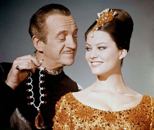 Cardinale đóng cặp với David Niven trong bộ phim hài “The Pink Panther” (1964) của Blake Edwards, với dàn diễn viên bao gồm Peter Sellers và Robert Wagner. Đây là bộ phim đầu tiên bà làm cho một đạo diễn người Mỹ. Ảnh: Sunset Boulevard/Corbis, qua Getty Images