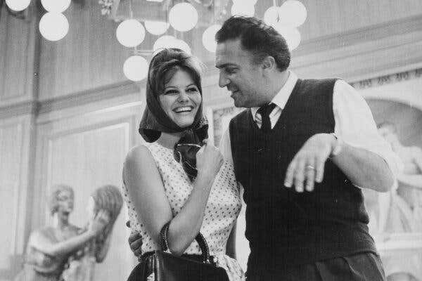 Cardinale cùng Federico Fellini vào năm 1963 trên phim trường bộ phim “8½” của ông, một trong số những bộ phim lớn mà bà thực hiện liên tiếp. Ảnh lưu trữ/Moviepix, qua Getty Images
