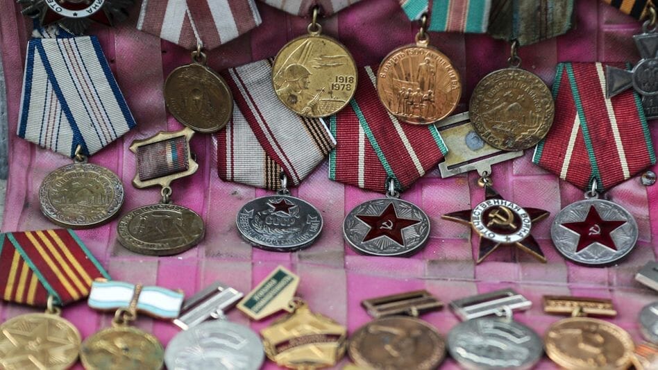 Huy chương bán chợ trời tại Tbilisi, thủ đô Georgia. Ảnh: Orhan Karsli / Anadolu / Getty Images