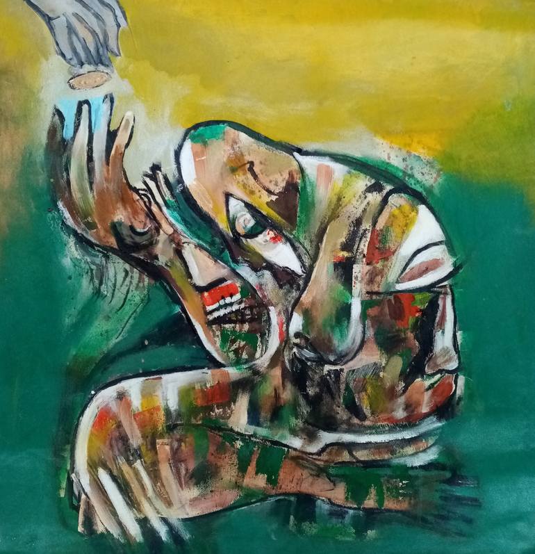 Lão Ăn Mày – Tranh: Anjana Rathnayaka, Sri Lanka (Nguồn: www.saatchiart.com)
