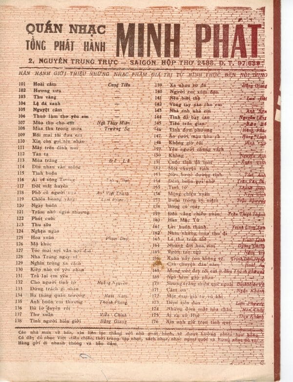 Trong một chuyến về thăm quê nhà gần đây nhất, tôi lại được người Sài Gòn cũ gởi gắm hồn của những người trẻ năm xưa còn sống ở quê nhà. Trẻ năm xưa nhưng nay đã là những ông bà lão tóc hai màu. Dầu vậy, hồn Sài Gòn cũ vẫn như ngày nào trước khi có cuộc đổi đời. Nó không mất, không bị “cải tạo”. Nó vẫn sừng sững tồn tại trong những ấn phẩm văn hóa trước 1975 sống sót qua cuộc phần thư tàn khốc. Nó sống sót được là nhờ ở lòng dân. Nhờ vậy, hôm nay đây tôi may mắn “sở hữu” hồn Sài Gòn ấy qua kho tài sản vô giá : hàng mấy trăm bài nhạc cũ in trước 1975, với cả thủ bút , chữ ký của các nhạc sĩ tác giả, với cả những hàng chữ viết tay của người chủ sở hữu năm xưa ghi lại kỷ niệm của riêng mình.