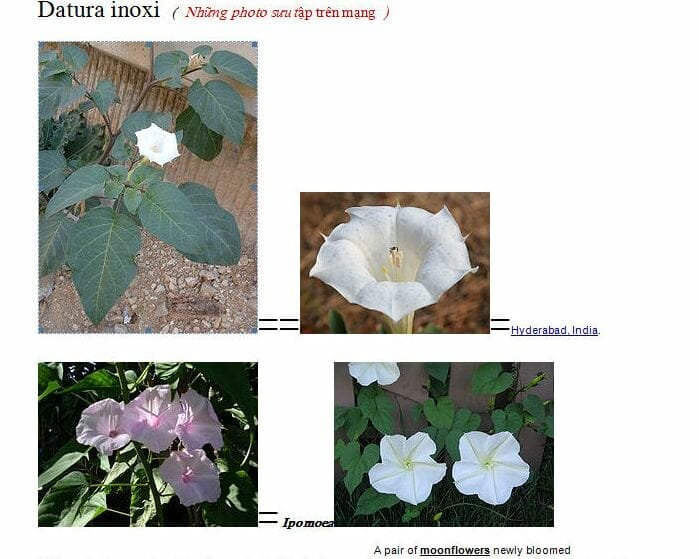 Kỳ này tôi xin giới thiệu 1 album về hoa Trăng. Hoa Trăng ( Moonflowers) gồm nhiều loại như Morning Glory, ( nhiều mầu, nhiều loại) họ hàng của hoa Trăng gồm cả hoa Muống dại, chúng giống nhau gần như chị em sinh đôi về diện mạo, chỉ khác : một nàng thì trời ban cho hương thơm, lại được người ta nâng niu trồng trong vuờn nhà , hay trong các chậu đẹp.