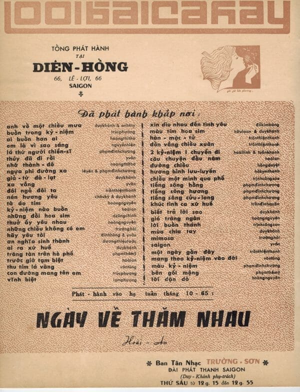 Trong một chuyến về thăm quê nhà gần đây nhất, tôi lại được người Sài Gòn cũ gởi gắm hồn của những người trẻ năm xưa còn sống ở quê nhà. Trẻ năm xưa nhưng nay đã là những ông bà lão tóc hai màu. Dầu vậy, hồn Sài Gòn cũ vẫn như ngày nào trước khi có cuộc đổi đời. Nó không mất, không bị “cải tạo”. Nó vẫn sừng sững tồn tại trong những ấn phẩm văn hóa trước 1975 sống sót qua cuộc phần thư tàn khốc. Nó sống sót được là nhờ ở lòng dân. Nhờ vậy, hôm nay đây tôi may mắn “sở hữu” hồn Sài Gòn ấy qua kho tài sản vô giá: hàng mấy trăm bài nhạc cũ in trước 1975, với thủ bút, chữ ký của các nhạc sĩ tác giả, với cả những hàng chữ viết tay của người chủ sở hữu năm xưa ghi lại kỷ niệm của riêng mình.