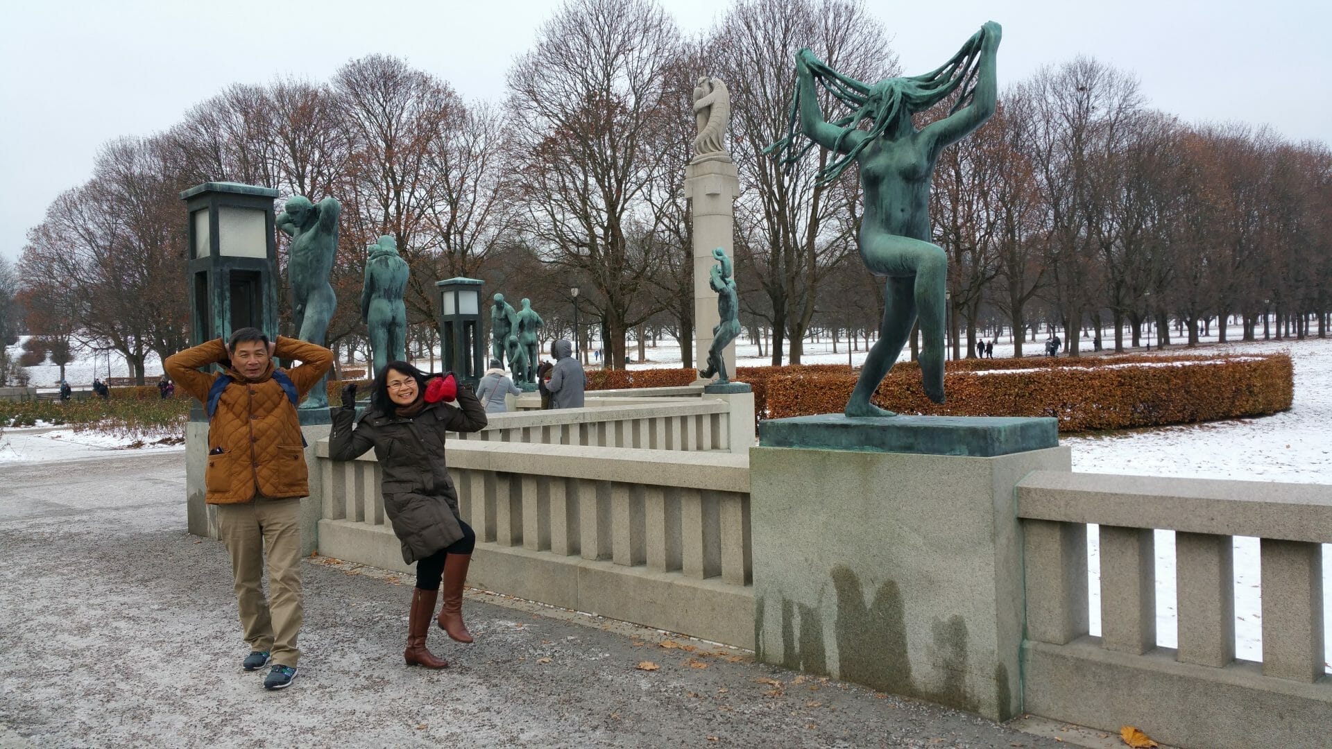 Chỉ mỗi ngày thứ bảy cho Oslo, chúng tôi có thể “liếc” sơ một hai danh lam thắng cảnh của thủ đô. Chúng tôi trực chỉ Vigelandsanlegget. Người Việt ở Na Uy gọi nôm na là công viên “xếch-xy”, vì toàn bộ tượng hình ở công viên đều ở trong trang phục chào đời.