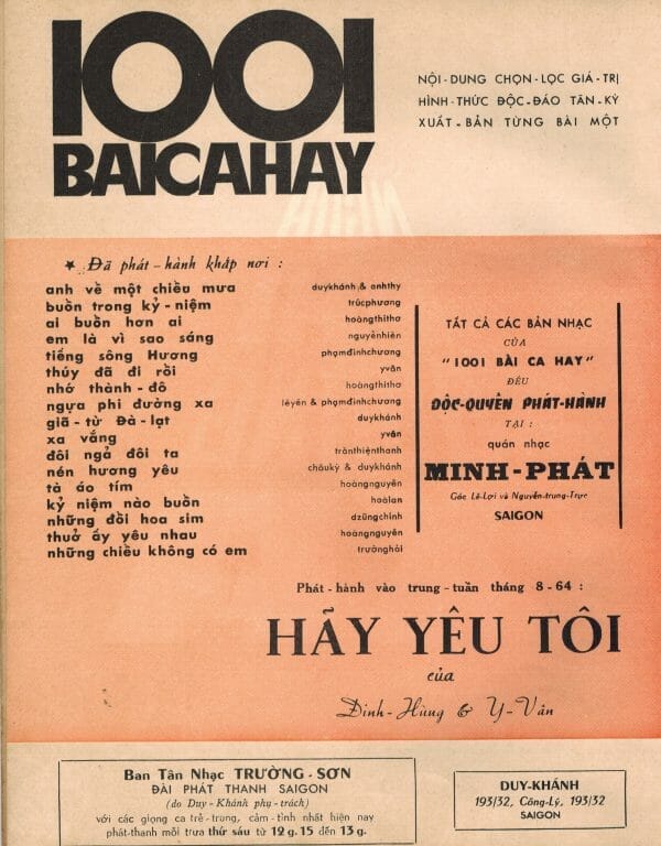Chuyên mục “Dòng Nhạc Kỷ Niệm” trên TV&BH sẽ là một công trình dài hạn. Mỗi kỳ chúng tôi sẽ giới thiệu một bài nhạc, với phần phóng ảnh của Bìa Trước, Bìa Sau, hai trang ghi nhạc và lời bên trong. Kèm theo đó sẽ là phần sưu tập audio, tức bài nhạc được hát bởi một ca sĩ. Chúng tôi sẽ cố sưu tập bản nhạc được hát bởi một ca sĩ miền Nam trước 1975 để ý nghĩa bảo tồn được trọn vẹn, dù rằng cũng bản nhạc đó, với phần kỹ thuật, phối âm, phối khí và ca sĩ trẻ hơn thực hiện tại hải ngọai sau này có hay hơn nhiều. Mặt khác, như tên gọi “Dòng Nhạc Kỷ Niệm”, nghe một bản nhạc cũ bằng chính âm thanh cũ của ngày xưa, là sống lại kỷ niệm về một đoạn đời cùng với những niềm vui, những nỗi buồn của riêng mỗi người. Chúng ta nghe nhạc cũ là nghe kỷ niệm, nhờ kỷ niệm, âm thanh bài nhạc ở lại trong hồn lâu hơn, sâu hơn, đằm thắm hơn. Do đó, ở đây không có chỗ cho những thẩm định chủ quan nhạc hay, nhạc dở, nhạc sang, nhạc sến, nhạc nghệ thuật, nhạc thương mại v.v..(T.Vấn: Dòng Nhạc Kỷ Niệm với Nhạc cũ miền Nam).