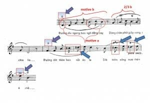 Điểm cần ghi nhận là đoạn nhạc được nhắc lại gần như không sót một nốt, chỉ trừ nốt cuối là nốt Mi. Đây là nốt rất ít dùng trong bài, chỉ xảy ra vài lần ở đoạn Hai như “ngàn sao sáng xa”, “thướt tha”, “tóc ngà”.