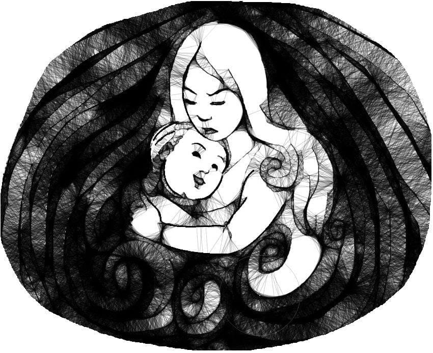Mẹ Con – Tranh: Nguyễn Đức Tuấn Đạt