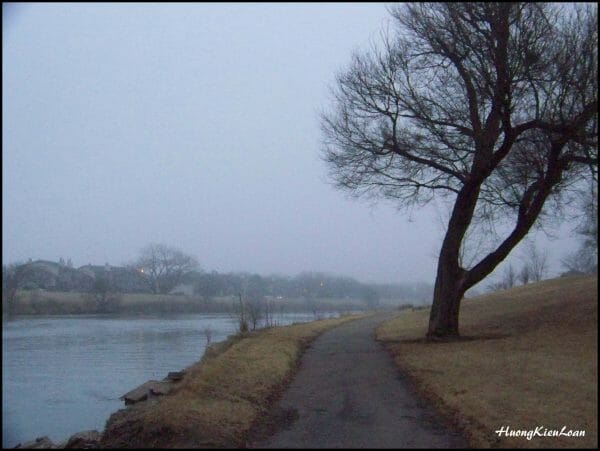 Nàng dừng xe ở một khúc quanh, và yên lặng ngắm cảnh vật, con đuờng để chạy bộ ven sông bên kia bờ chìm trong màn nước, nàng nhớ đến hai người đã hò hẹn, sẽ có một ngày anh đến nơi này từ bao chuyến bay để chạy bộ với nàng như thói quen mỗi chiều.