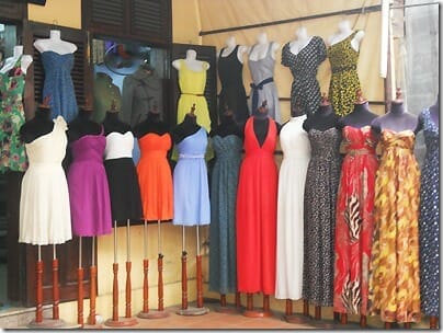 Không thấy tiệm bán tủ lạnh, TV, bàn ủi điện, nồi cơm điện. Không thấy tiệm bán xe gắn máy, quạt máy. Chỉ thấy rất nhiều tiệm bán quần áo, nhiều tiệm may mà du khách có thể có ngay một bộ vest sau vài tiếng đồng hồ.
