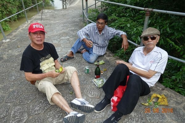 Để ghi nhớ một chuyến đi có thể không bao giờ lặp lại, quý ông trong đoàn ngồi bệt ngay tại đập rót rượu tây ra nhắm với nem Ninh Hòa trong khi quý bà … chụp ảnh.
