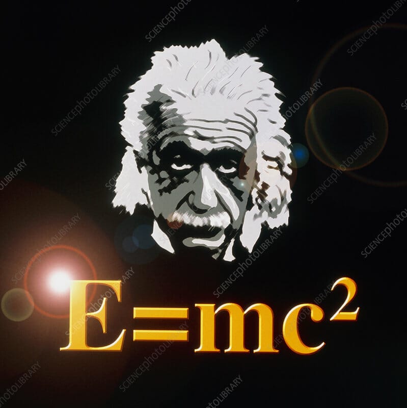 Einstein đã nhìn ra sự sai biệt ấy. Không biết nhờ tính toán hay dùng trực giác của thiên tài, cụ thấy hình cầu thể hiện tầm xa và vùng công phá có diện tích chỉ nhỏ bằng khoảng 1/12 diện tích hình cầu ánh sáng. Do đó, công thức 4πr² trở thành: 12.5664 x r² ÷12.5664 = r² hay C² . Và khi đem C² nhân với khối lượng chất làm bom (m) ta tìm được nhiệt lượng cùng sức công phá của nó. E= mc² chào đời.