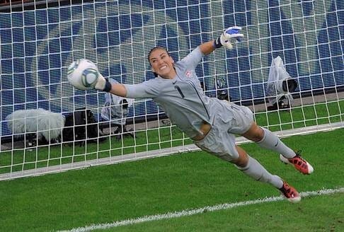 Thủ môn Hope Solo xinh đẹp của đội Mỹ trong pha phá bóng tuyệt vời một cú đá 11m của cầu thủ đội Brasil