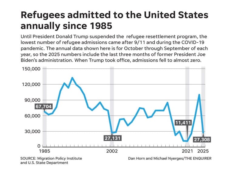 Số lượng người tị nạn được nhận vào Hoa Kỳ hàng năm kể từ năm 1985© Michael Nyerges