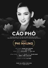 Khi dịch bệnh tràn lan đến mức độ không kiểm soát nổi tại Việt Nam, thì hầu như các ca nhạc sĩ mang quốc tịch Mỹ như Tuấn Ngọc, Kỳ Duyên, Nguyễn Hồng Nhung, Thanh Hà, Elvis Phương, Kim Anh v..v.. đều trở về Hoa Kỳ để được chích ngừa. Nhưng riêng Phi Nhung, mặc dù cô đã nhận lời BTC để xuất hiện trong hai show nhạc nói trên, nhưng giờ chót người mẹ có nhiều con nuôi nhất đã quyết định ở lại với đàn con gồm 23 đứa trẻ, và như cô tâm sự: “ở lại để chia sẻ nỗi đau của Sài Gòn và những người thân thương….”! Để rồi cuối cùng cô đã gánh nỗi bất hạnh của người dân trong nước qua cơn đại dịch lớn nhất trong lịch sử kể từ sau ngày CS cưỡng chiếm miền Nam VN.