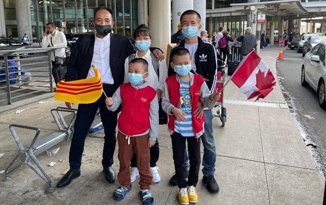 Gia đình ông Nguyễn Văn Thuyết vừa đặt chân xuống phi trường Toronto, Canada