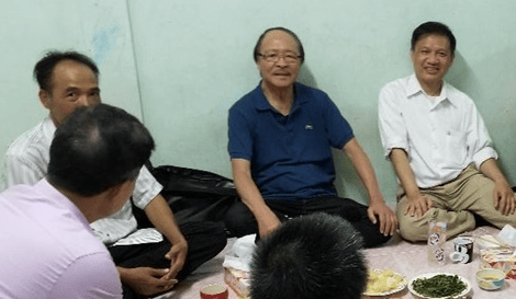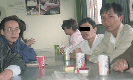 Hình anh Thuyết ngồi đối diện với ký giả Tường Thắng (đeo kính),