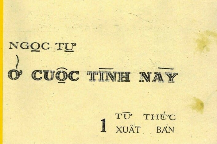 Ở Cuộc Tình Này . thơ ngọc tự. từ thức xuất bản.sàigòn tháng mùa xuân 1971.bìa và phụ bản lê trường đại,cao bá minh, hòang thụy kha.tất cả những ấn bản đều là lưu vật thân quen gởi tới bạn hữu của tù thức, của ngọc tự và của dòng sông nhỏ yêu dấu ấy.sàigòn tháng vào xuân một chín bẩy một.