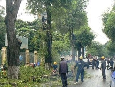 Công nhân thành phố Sài Gòn đang đốn bỏ cây gìa trên 60 năm