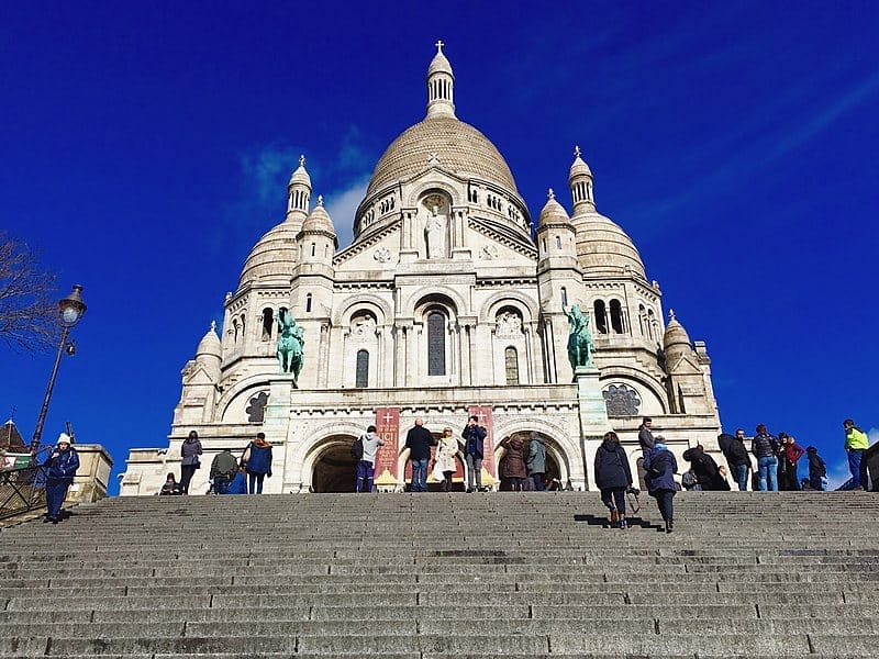 Mỏi gối chồn chân cũng phải trèo, một ngày nắng ong ong, mây đơ đơ, tôi lễnh đễnh đưa tiện nội leo lên đồi Montmartre thăm nhà thờ Thánh Tâm hay Vương cung thánh đường Sacré-Cœur. “Sacré-Cœur” là biểu tượng trái tim của Chúa Giêsu…