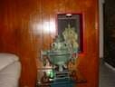 Như bác thấy đấy, nhà bé bằng cái lỗ mũi, nhưng để trang trí trần làm thêm kèo, đà cho ra dáng kiến trúc, tường khóet hộp để đặt tượng, gắn đèn rọi như phòng triển lãm.