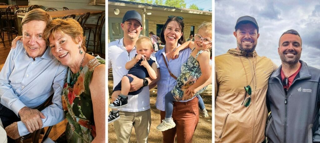 Hình ảnh: Từ trái sang: Clint Parsley và Alex Albright năm 2022; Lance Parisher và Alissa Parsley ở Austin cùng các con, Clay và Rosemary, vào ngày 10 tháng 4 năm 2025; Aaron Parsley (trái) và Patrick Kelleher ở Tanzania năm 2023. (Ảnh: Aaron Parsley)