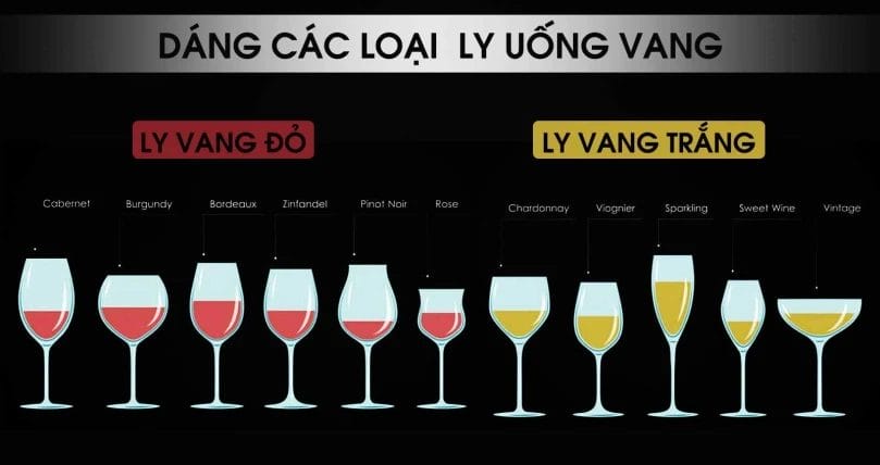 Sau đây là các loại ly phổ biến dùng cho rượu vang: