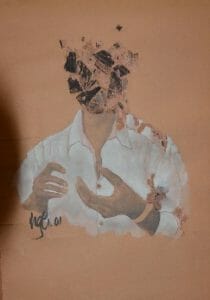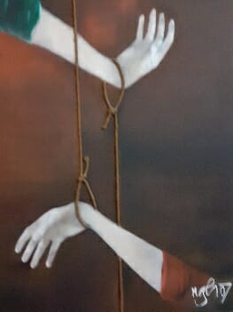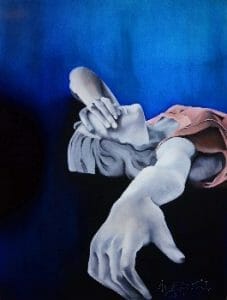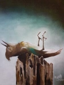 Tranh của NgH giàu sức tưởng tượng, kỳ dị đến nỗi có người bạn nói với tôi có chút gì đó lập dị ở Thúc thủ, Và không ngừng rơi… như tranh của Salvador Dalí. Tôi chưa từng ngắm nhìn tranh của danh họa này, và vẫn giữ trong đầu những ám ảnh với Nguyệt vựng (quầng trăng đỏ), nguyệt tận,  Ngồi chơi (chân dụng tự họa, tọa sĩ không đầu), Chấn thương sọ não.v.v.