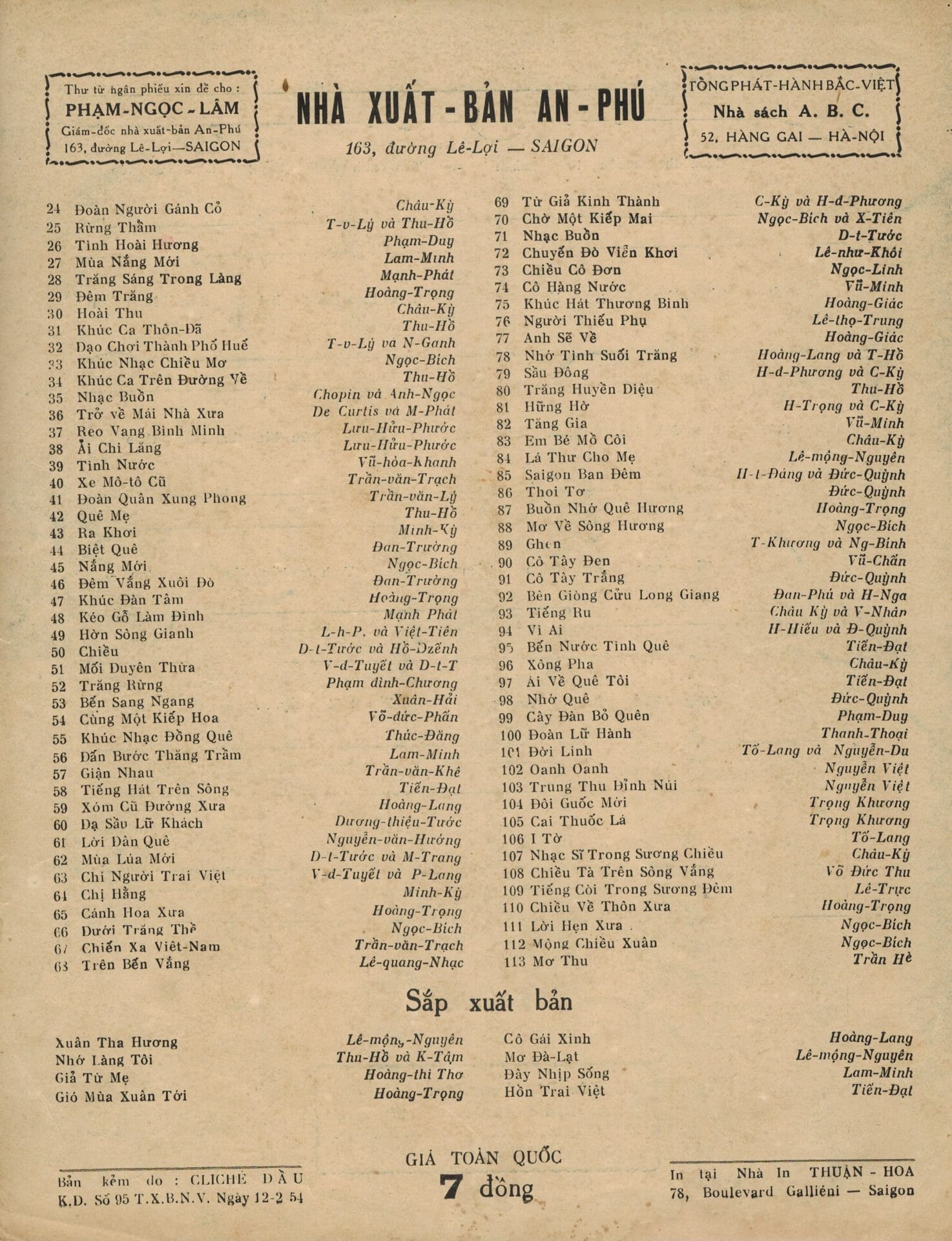 *Chú Thích: Kể từ entry Những Ngày Tàn Mơ trong loạt bài Dòng Nhạc Kỷ Niệm, sẽ không có phần audio của bài nhạc (dạng MP3, hoặc Youtube). Lý do: dù đã bỏ rất nhiều thì giờ nỗ lực tìm kiếm, chúng tôi đành phải chịu thua và quyết định cho công bố phóng ảnh các bài nhạc với hy vọng, một ngày nào đó, sẽ có các độc giả ưa chuộng chuyên mục DNKN tiếp tay gởi đến chúng tôi phần audio còn thiếu sót. Mong lắm thay! (T.Vấn & Bạn Hữu)