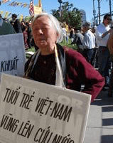 Mẹ chẳng thiết đi du lịch, chẳng thiết đi đâu chơi, chỉ thích đi họp cộng đồng hay đi biểu tình. Ngày ca nhạc sĩ Việt Dũng còn sống, trong một buổi họp cộng đồng, anh hô to khẩu hiệu cổ vũ xoá bỏ điều 4 hiến pháp. Mẹ chưa bước khỏi xe, chưa kịp cầm gậy đã hô to “xoá bỏ, xoá bỏ, xoá bỏ …” Giờ anh đã đi lâu rồi, biết bao nước trôi qua cầu, bao người trẻ tuổi đã rời bỏ cuộc đời này mà mẹ vẫn còn đây với mái tóc bạc trắng thời gian.