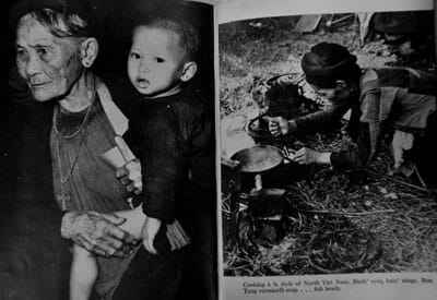 Phải: Nấu ăn kiểu miền Bắc Việt Nam, mắt chim, cánh dơi, đầu cá, tất cả nấu thành một loại nước lèo để ăn bún. (Hình Người Việt, chụp từ cuốn “Deliver Us From Evil” của Bác Sĩ Tom Dooley)
