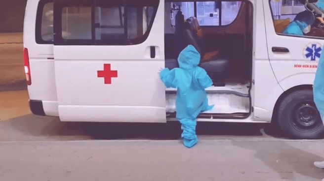 Chiều 24-6, Trung tâm Kiểm soát Bệnh tật TP.HCM (HCDC) cho biết vừa nhận được video do Điều dưỡng Nguyễn Thanh Trúc, nhân viên phòng chống dịch Trạm Y tế xã Phong Phú, huyện Bình Chánh quay lại hình ảnh bé gái nhỏ 5 tuổi, trong trang phục phòng hộ cá nhân rộng thùng thình, một mình lên xe y tế của BV huyện Bình Chánh để đến BV Trưng Vương điều trị COVID-19.