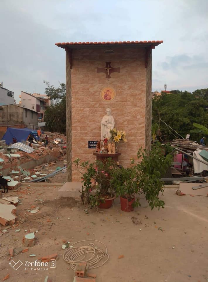 Căn nhà TPB – VNCH dành cho các TPB đơn thân trú ngụ đã bị đập nát vào hôm nay 08.01.2019, duy chỉ còn tượng đài Thánh Cả Giuse.