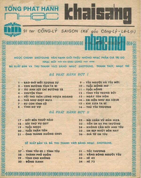 Trong một chuyến về thăm quê nhà gần đây nhất, tôi lại được người Sài Gòn cũ gởi gắm hồn của những người trẻ năm xưa còn sống ở quê nhà. Trẻ năm xưa nhưng nay đã là những ông bà lão tóc hai màu. Dầu vậy, hồn Sài Gòn cũ vẫn như ngày nào trước khi có cuộc đổi đời. Nó không mất, không bị “cải tạo”. Nó vẫn sừng sững tồn tại trong những ấn phẩm văn hóa trước 1975 sống sót qua cuộc phần thư tàn khốc. Nó sống sót được là nhờ ở lòng dân. Nhờ vậy, hôm nay đây tôi may mắn “sở hữu” hồn Sài Gòn ấy qua kho tài sản vô giá: hàng mấy trăm bài nhạc cũ in trước 1975, với thủ bút, chữ ký của các nhạc sĩ tác giả, với cả những hàng chữ viết tay của người chủ sở hữu năm xưa ghi lại kỷ niệm của riêng mình.
