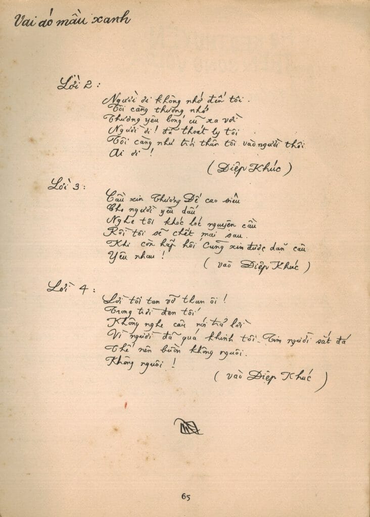 Giữa thập niên 60, người Hoa Kỳ tới Việt Nam càng ngày càng nhiều. Tiếp súc với dân ca Hoa Kỳ, tôi nhận thấy những bài cổ ca của Anh Cát Lợi, Tô Cách Lan, Ái Nhĩ Lan… chính là mẹ đẻ của dân ca Hoa Kỳ. Tôi soạn lời ca cho những bài ca rất cổ như: