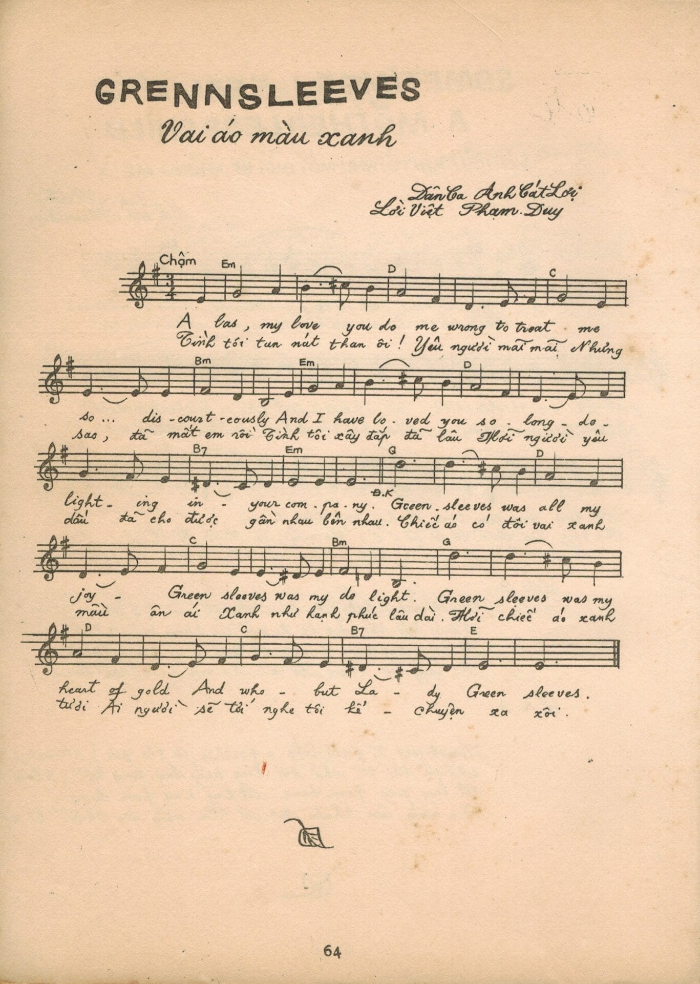 Cổ ca Anh Cát Lợi – Lời Việt : Phạm Duy