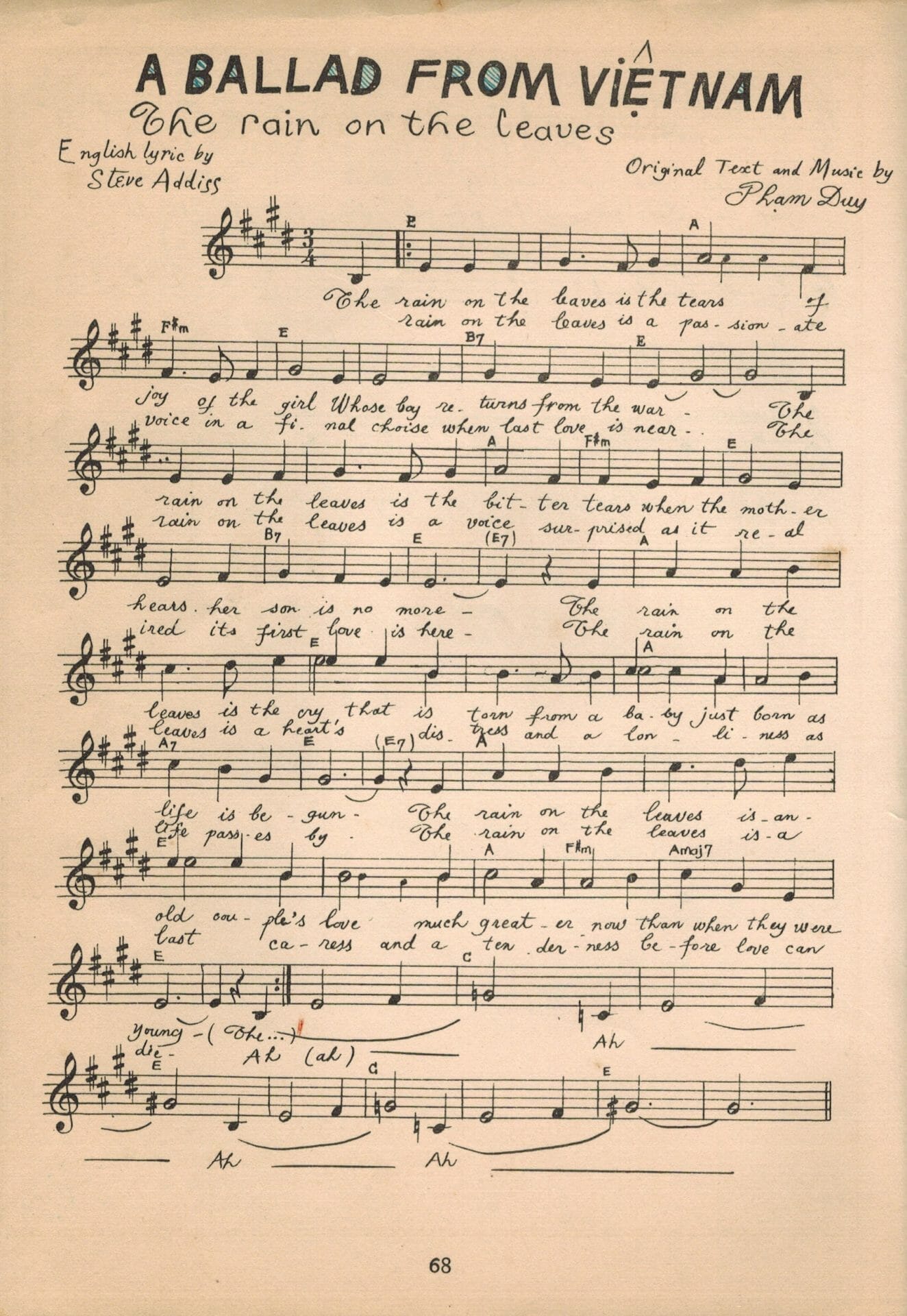 Phạm Duy: Tuyển tập Dân ca – Bài 35: A Ballad from Viet Nam (The rain on the leaves)