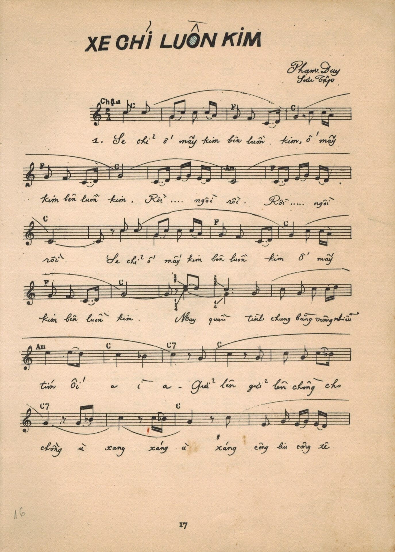*Chúng tôi giữ nguyên tên bài dân ca này như đã được in trong trong tập nhạc: XE chỉ luồn kim, chứ không phải SE chỉ luồn kim như trong một ấn bản sau này. Có lẽ nhạc sĩ đã nhận ra sai sót của mình ở lần ấn bản trước đó chăng?