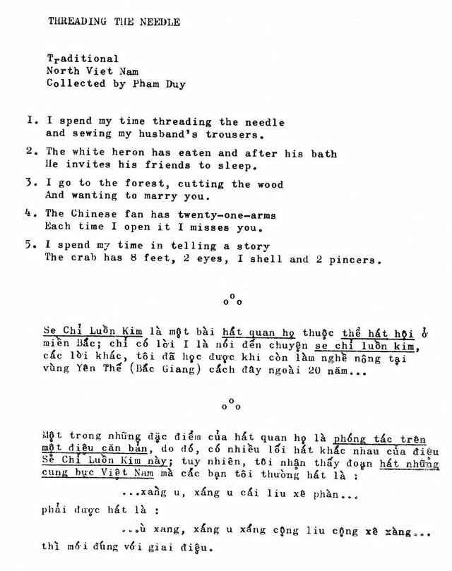 (Trích: Phạm Duy – Dân Ca Miền Suôi)