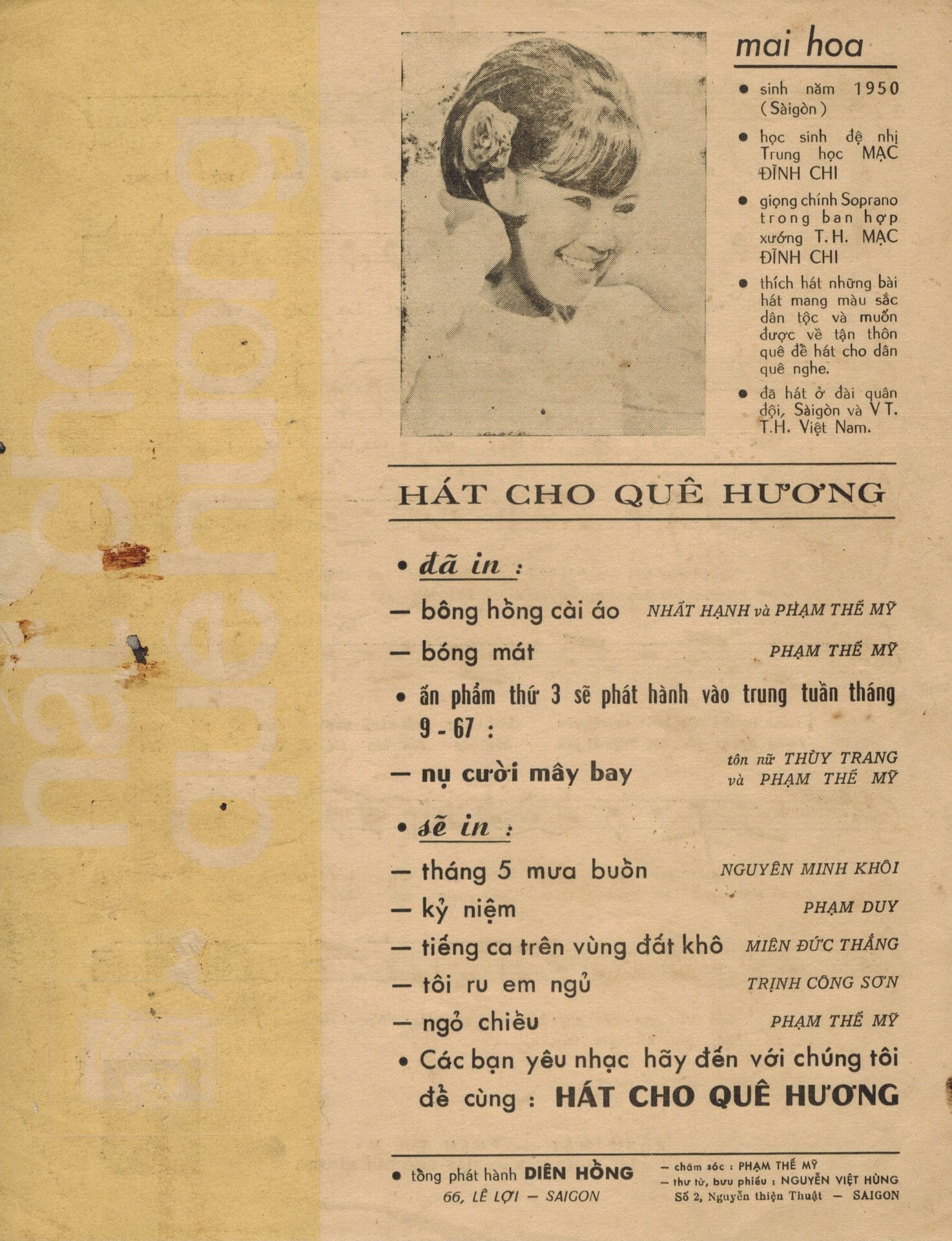 Trong một chuyến về thăm quê nhà gần đây nhất, tôi lại được người Sài Gòn cũ gởi gắm hồn của những người trẻ năm xưa còn sống ở quê nhà. Trẻ năm xưa nhưng nay đã là những ông bà lão tóc hai màu. Dầu vậy, hồn Sài Gòn cũ vẫn như ngày nào trước khi có cuộc đổi đời. Nó không mất, không bị “cải tạo”. Nó vẫn sừng sững tồn tại trong những ấn phẩm văn hóa trước 1975 sống sót qua cuộc phần thư tàn khốc. Nó sống sót được là nhờ ở lòng dân. Nhờ vậy, hôm nay đây tôi may mắn “sở hữu” hồn Sài Gòn ấy qua kho tài sản vô giá: hàng mấy trăm bài nhạc cũ in trước 1975, với thủ bút, chữ ký của các nhạc sĩ tác giả, với cả những hàng chữ viết tay của người chủ sở hữu năm xưa ghi lại kỷ niệm của riêng mình.