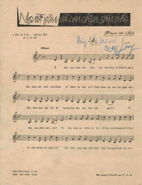 Trong một chuyến về thăm quê nhà gần đây nhất, tôi lại được người Sài Gòn cũ gởi gắm hồn của những người trẻ năm xưa còn sống ở quê nhà. Trẻ năm xưa nhưng nay đã là những ông bà lão tóc hai màu. Dầu vậy, hồn Sài Gòn cũ vẫn như ngày nào trước khi có cuộc đổi đời. Nó không mất, không bị “cải tạo”. Nó vẫn sừng sững tồn tại trong những ấn phẩm văn hóa trước 1975 sống sót qua cuộc phần thư tàn khốc. Nó sống sót được là nhờ ở lòng dân. Nhờ vậy, hôm nay đây tôi may mắn “sở hữu” hồn Sài Gòn ấy qua kho tài sản vô giá : hàng mấy trăm bài nhạc cũ in trước 1975, với cả thủ bút , chữ ký của các nhạc sĩ tác giả, với cả những hàng chữ viết tay của người chủ sở hữu năm xưa ghi lại kỷ niệm của riêng mình.