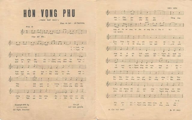 Câu “Vui ca xang rồi đi tiến binh ngoài ngàn” đã được in trong bản này. Các bản Hòn Vọng Phu 1 khác được tái bản ở miền Nam trước 1975 cũng đều giống như bản này, về nhạc cũng như về lời. Vậy chúng ta có thể xem đây là bản gốc, in lần thứ nhất, do chính tác giả chủ trương xuất bản và giữ bản quyền.