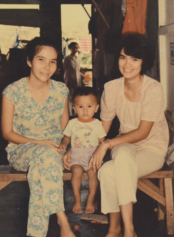 Vuong cùng mẹ, Rose, bên trái, và dì của anh, Kim, vào năm 1990 tại Trại tị nạn Bataan ở Philippines.