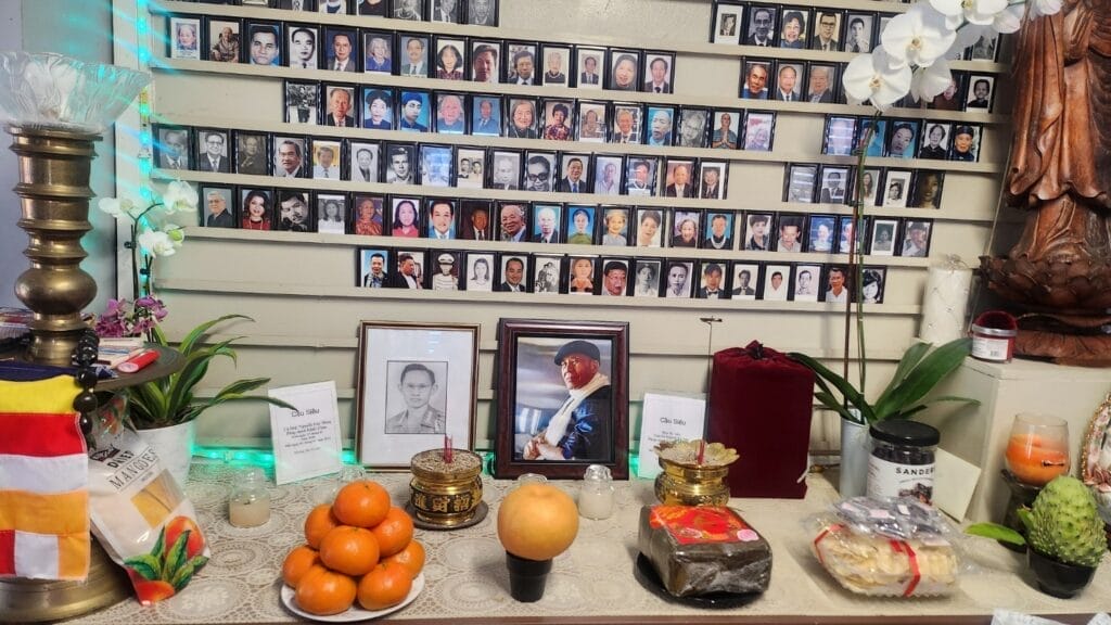Căn phòng đông đảo người đưa tiễn. Bạn học, bạn chơi, bạn tù, bạn văn gọi nhau ơi ới. Ông thì tì người vào cây gậy, ông chập chững trong chiếc walker, ông lết lết trên thảm ngả nghiêng như người đang trượt patin. Chuyện trò rôm rả quên hẳn ông bạn đang nằm trong sáu tấm ván thiên. Lâu rồi không gặp nhau, chỉ rình khi có một ông “hy sinh” mới cất công ra khỏi nhà. Chúng tôi tới tuổi chỉ còn gặp nhau tại nhà quàn. Để tiễn người vượt cõi.