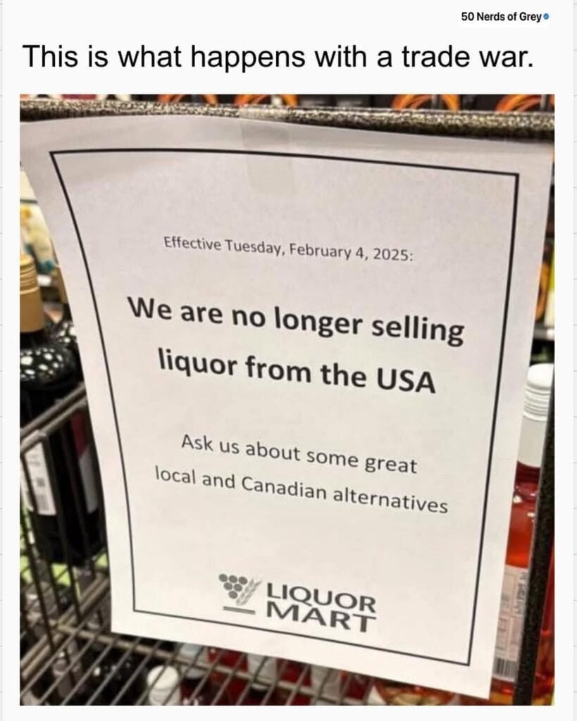 Canada là hàng xóm của Mỹ từ bao nhiêu năm nay. Hai nước sống chung hòa bình như hai anh em, bỗng dưng ông Trump ngang thiên đòi…giải phóng Canada. Đang là một đất nước luôn được xếp hạng là quốc gia đáng sống hơn nước Mỹ, nay ông Trump chơi trò bắt nạt, dân Canada đâu có chịu. Ông còn khơi khơi gọi Thủ Tướng Canada Justin Trudeau là “Thống Đốc Canada”. Thiệt bỉ mặt nhau quá. Hãng thăm dò danh tiếng Leger làm một cuộc thăm dò đưa tới kết quả có tới 82% dân Canada chống đối. Một làn sóng phản đối mạnh mẽ được tự động hình thành trên khắp nước. Dân Canada tẩy chay hàng Mỹ. Nhiều doanh nghiệp bán lẻ rút hàng Mỹ xuống khỏi kệ và hãnh diện trưng bảng “Made in Canada” trên hàng hóa sản xuất tại Canada. Hai trận hockey giữa Canada và Mỹ biến thành cuộc chiến giữa hai nước.