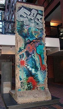 Phía Tây Bá Linh của bức tường, phía của tự do, được phủ kín những tranh vẽ graffiti do những nghệ sĩ vô danh nhưng rất tự do vẽ. Khi bức tường bị phá vỡ, những mảnh vụn bên phía Tây Bá Linh sặc sỡ những sắc màu.Với chiều dài 106 cây số, cao 3,6 thước, người ta đã lấy được biết bao kỷ vật trong 5 năm, từ 1989 tới 1994. Chính phủ lấy, dân chúng lấy, miếng lớn miếng nhỏ, miếng nào cũng quý. Chính phủ dùng để tặng quốc khách hay các thành phố khắp nơi. Năm 1992, Nữ Hoàng Elizabeth II của Anh tới thăm viếng chính thức Đức và đã được chính phủ Đức trao tặng một mảnh tường. Mảnh tường được cắt gọt rất mỹ thuật, có hai vạch xanh đỏ dấu vết của graffiti, được đặt trên một bệ đá đen có khắc hàng chữ Đức: “Berliner Mauer 1961-1989”.Các kỷ vật này còn được chính phủ Đức tặng cho các nước Nga, Mỹ, Anh, Vatican và nhiều quốc gia khác. Một tặng vật đã được dựng ở vùng phi quân sự chia cắt Nam và Bắc Hàn.